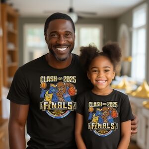Celebrate the NBA Finals Clash of 2025 with this stylish kids' t-shirt. Featuring a fun graphic design, it's perfect for young sports fans. Available as an adult or kid's tee, and an adult or kids sweatshirt.