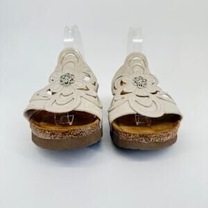 Naot Sandy Sandals Women's 10 41 Leather Floral Rhinestone Slip On Wedge Comfort
