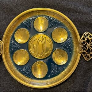 Gold and Blue Seder Plate with 3 Jewish themed Books