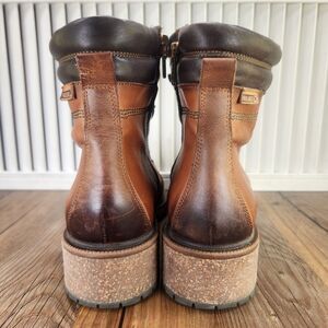 Pikolinos Aspe Ankle Boots Womens Sz 9.5 Brown Leather Lace Up Hikers Side Zip