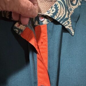 NWT Boho beach dress with floral and paisley design. Features vibrant orange, blue, and green hues. Button-down front adds a classic touch. See photos 1 button is missing but extra buttons are attached. Smoke free home