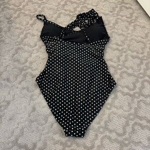 Aerie Black & White Polka Dot Wrap One Piece Swimsuit V Neck Conservative S Cute