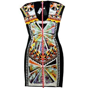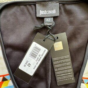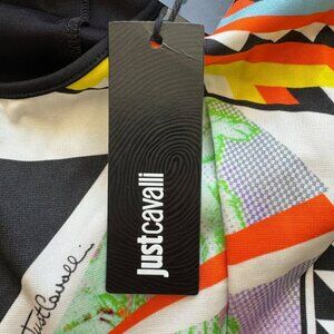 NWT graphic print bodycon dress by Just Cavalli in black, white and multi colored size 42