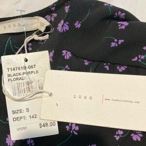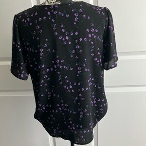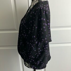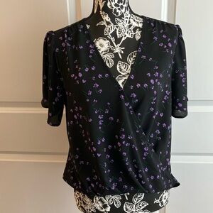 NWT Lush Black and Purple Wrap Blouse with Short Sleeves