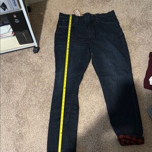 Eddie Bauer flannel lined button closure dark wash. These are warm and cozy and very stylish for any winter months. Never worn new with tags