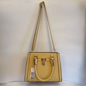 NWT Elegant Vegan Leather Yellow Handbag with removable strap