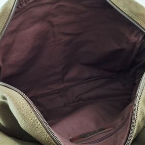 The Limited messenger bag. Adjustable cotton strap. 2 exterior pockets. Fold over buckle close. Top zipper close. Interior lining with zipper pocket. Canvas body with leather trim.