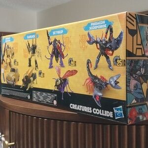 New in original box, four pack of Transformers. (Autobot Goldbug, Ransack, Skywasp, and Predacon Scorponok).