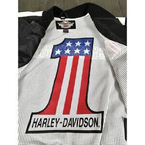 Harley Davidson Jacket Men's M Full Zip Logo Embroidered Racing Evel Knievel USA. Jacket is in good pre owned condition, please see all pictures and measurements.