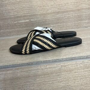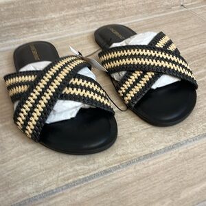 LANE BRYANT NWT Womens Size 9W Dream Cloud Criss-Cross Raffia Slide Black Tan