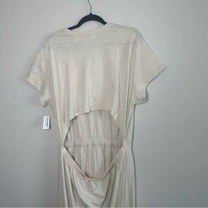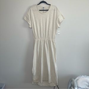 This elegant cream midi dress offers a relaxed fit and stylish design, perfect for any occasion. The soft fabric and subtle color make it a versatile addition to your wardrobe.