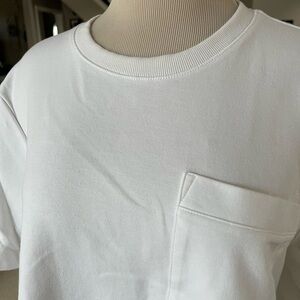ATHLETA White Pocket Short Sleeve Oversized Shirt Pleat Athleisure Size LARGE T