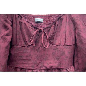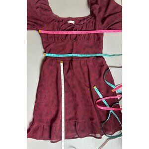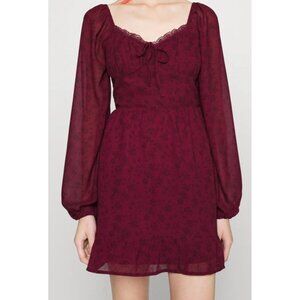 Hollister Burgundy Black Floral Babydoll Mini Dress Fairy Grunge Whimsy Goth