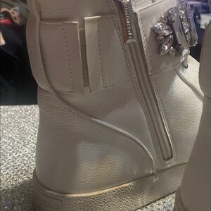 Stylish white sneakers with a crystal-embellished ankle strap. Adds a touch of glamour.