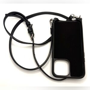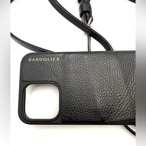 Bandolier EMMA Crossbody Phone Case in Black/Silver for iPhone 14 Pro Max. Excellent condition. Retail $112. The original crossbody phone case & a longtime fan favorite. 100% genuine leather with a slim, streamlined silhouette and a thinner, removable, adjustable strap for an elegant fit. The top-loading wallet keeps cards & cash secure. Designed for daily ease and timeless style—live light, stay connected, and move effortlessly.