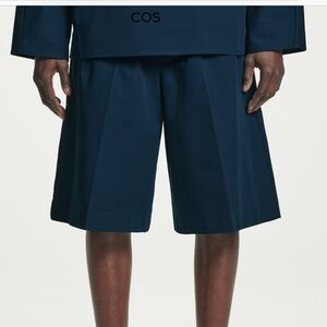 Elegant deep blue oversized wide-leg shorts from COS.