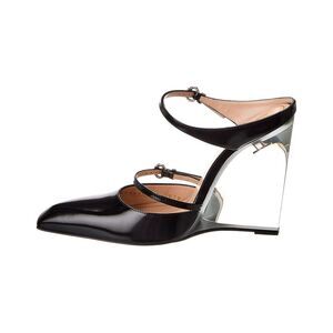 About the brand: Eclectic and coveted. Italian luxury redefined. Please note: Size selections are European. For US conversions, please reference size chart. Based on feedback from Members, this item typically runs large. We suggest sizing down. Made in Italy Leather Wedge Mule in black leather and light fine gold hardware with logo lettering and transparent wedge Buckle closure Lightly padded leather insole Smooth leather sole 4in heel Please note: All measurements are approximate and were taken from a size 37; slight variations may occur. Our products are 100% genuine. In some cases we purchase merchandise from trusted independent suppliers and not directly from the brand owner. In all cases we stand by the authenticity of every product sold on our site.