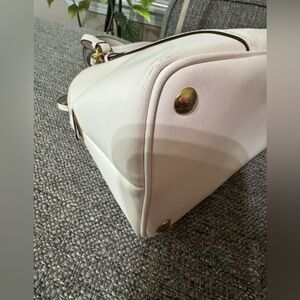 These a few scratches and signs of rubbing. See pictures. Still a very good winter white bag to have. Lots of life left.