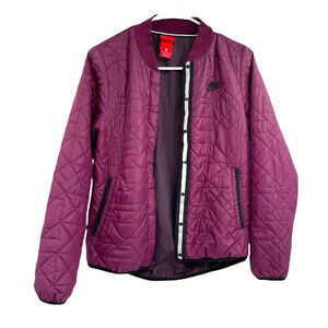 NIKE Women's Bomber Jacket Size XS PrimaLoft Quilted Snap Button 854747-609 Wine