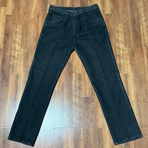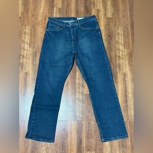 Stylish boot cut jeans with unique embroidery on back pockets. Rich navy color. Ideal for casual outings.