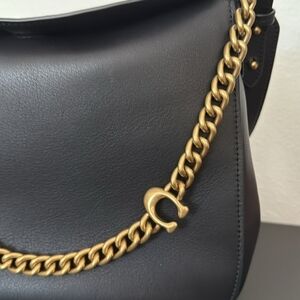 New Coach Black Leather Shoulder Bag with Gold Chain