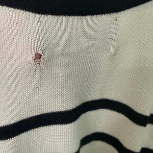 Condition: Good condition except for a tiny rip on the back where the tag is located (see pictures for closeups). Otherwise, this shirt has never been worn. This flaw has been factored into the price; however, offers are still welcome. If you're good at mending, take advantage of the deep discount. The shirt is adorable, soft, and comfortable.
