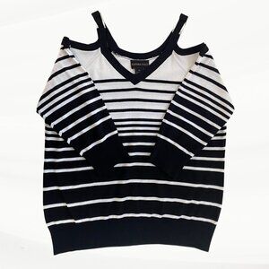 FLAWED Allegra Gold Striped Cold Shoulder Sweater Top, Size XL