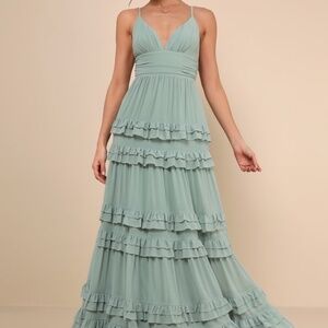 Lulus Lavish Perfection Sage Green Ruffled Tiered Maxi Dress - Size S