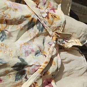 Elevate your style with this elegant floral beige vest by Notations. Perfect for layering, this top adds a touch of sophistication to any outfit.
