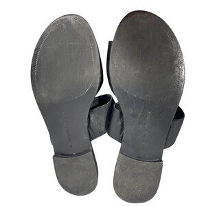 Chic black slide sandals. Single wide strap. Ideal for everyday style.