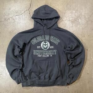 The product is an XL Champion Colorado University hoodie in a green color, made from a cotton blend material. It features a vintage design with a graphic print, suitable for a casual pullover style. The hoodie is branded by Champion and is themed around American college style from the 80s and 90s. It is ideal for activities like walking or casual wear during the winter, fall, and spring seasons. Made in El Salvador, this hoodie is a comfortable and stylish addition to any man's wardrobe.