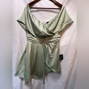 Lulus Womens Off the Shoulder Dress Asymmetrical Hem Satin Sage Green