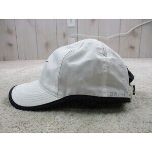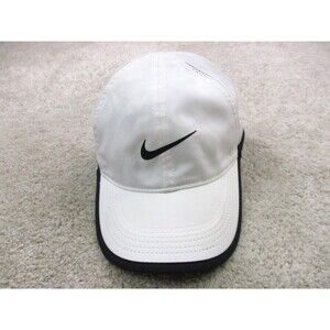 Nike Hat Cap Strap Back White Black Swoosh Lightweight Drifit Golf Golfer Mens *