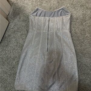 Super cute silver sparkly strapless dress. Sleek and stylish for any event.