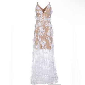 Dress the Population NWT Sidney A-line Peekaboo Gown In White/Nude Size XL