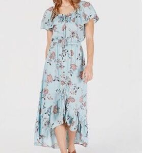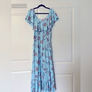 American Rag floral palette maxi dress with an off-the-shoulder neckline and flutter sleeves, this sleeveless dress Its flowing silhouette and resort wear style make it a versatile addition to your wardrobe excellent preowned condition size M