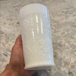 Milk Glass White Embossed Leaf and Grape Tumbler/Vase