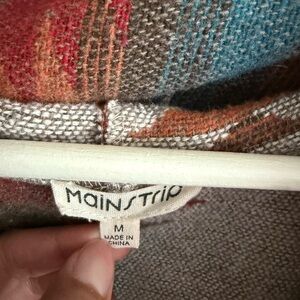 Stay warm and stylish with this multicolor hooded sweater. Featuring a blend of teal, red, and gray, this sweater is perfect for any casual outing. aztec pattern. oversized look. brand new never worn