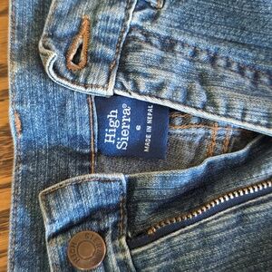 High Sierra high-waisted, medium weight denim, jean shorts, 96% cotton, 4% spandex for a great fit on these vintage, one-owner, jean shorts. Zipper fly, 5 belt loops, 5 pockets, with a slit at the side hem. No stains, no tears, no signs of wear. Excellent Used Condition.