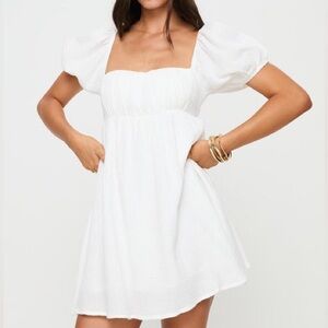 Princess Polly Let's Dance 100% Cotton Puff Sleeve Mini White Dress Size 6 NWOT