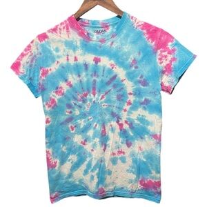 Description: plain blank blue pink purple white swirl tie-dye Gildan short sleeve crewneck casual spring summer fall hippie boho T-shirt