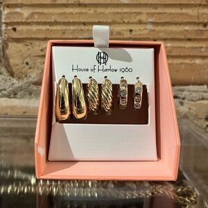 House of Harlow 1960 Gold Earrings Set New