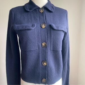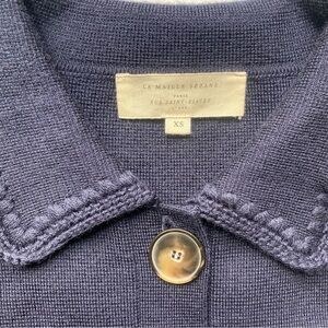 SEZANE Betty Cardigan Navy Crochet 100% Merino Wool Size XS