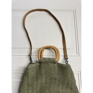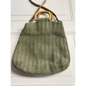 Fossil Green Weave Crochet Wooden Handles Hobo Bag Purse Woven Crossbody Strap