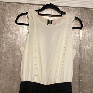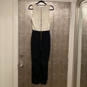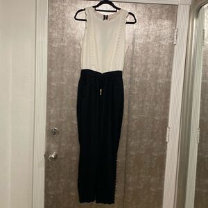 This stylish black and white jumpsuit offers a chic and modern look. Perfect for any occasion, it combines comfort with elegance.