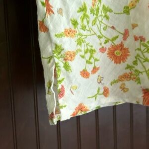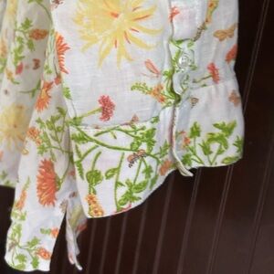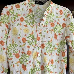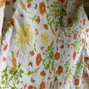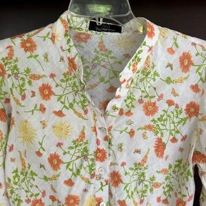 JIM THOMPSON Linen Floral Butterfly Button Front Mandarin Collar Blouse | Size 8