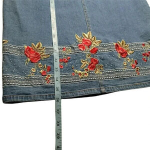 Denim & Co Skirt Maxi M Womens Embroidered Roses Slit Blue Jean Long Pockets. Very cute pre-owned good condition.
