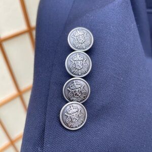 Elevate your style with this classic Michael Kors navy blue men's blazer. Made of 100% wool, in a classic style with a two-button closure and notched lapels. Perfect for any occasion, this jacket offers a sleek and sophisticated look.
