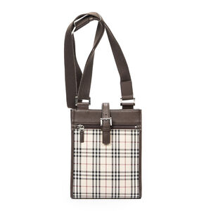 Burberry Handbag Barrel Bag in Beige/Red Haymarket Check Coated Canvas and Silver hardware. The product is in Perfect Condition (AA).