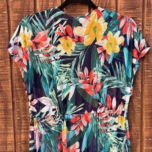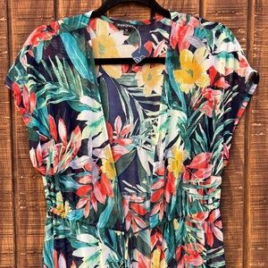 NWTS Ava & Grace Hawaiian Print Sheer Mesh Long Dress Bathing Suit Cover Up